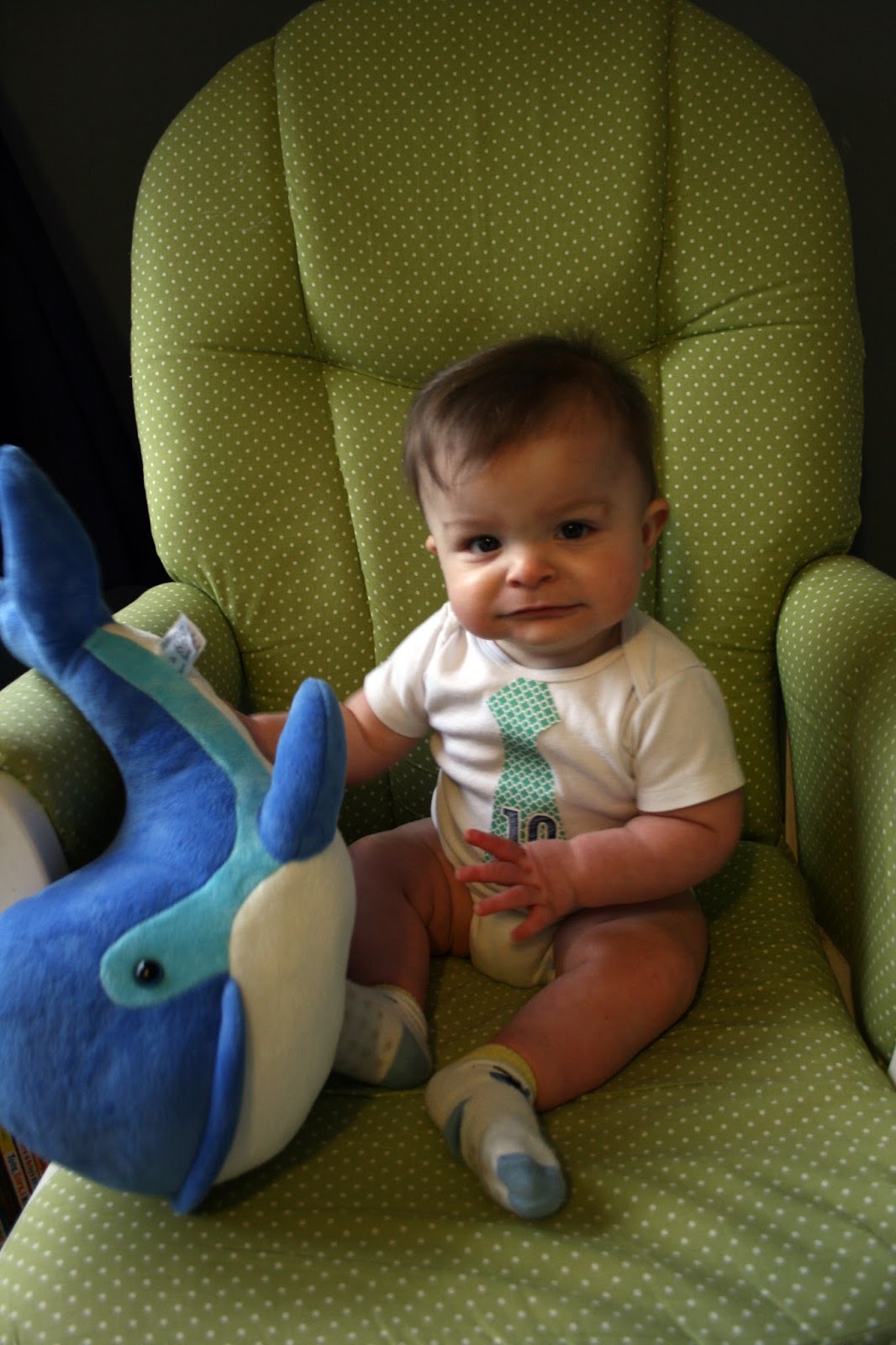 Hi there! On Saturday, I turned 10 months old! I'm gonna be 1 year before you know it! My cousin James turned 1 year this month already. Mommy says it's definitely been the fastest year of her life! I've started moving around really well this month, which means that I pretty much don't hold still anymore and have spent the month getting into all kinds of things (most of which I'm not supposed to!). I've been hearing a lot of "uh-uh" and "no's."